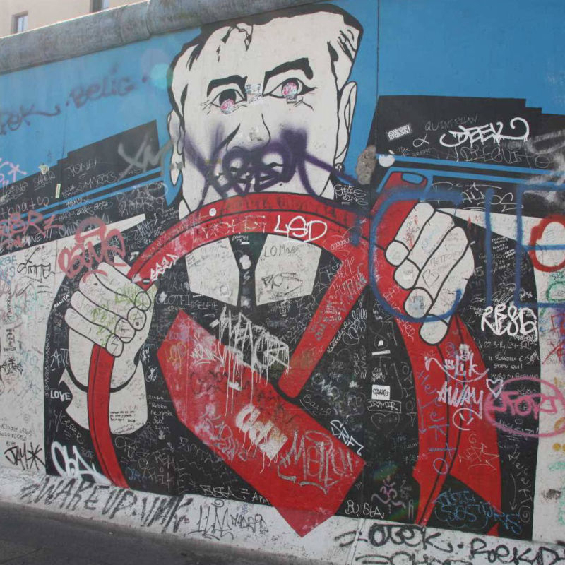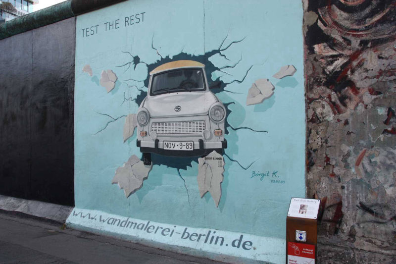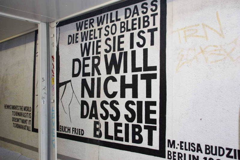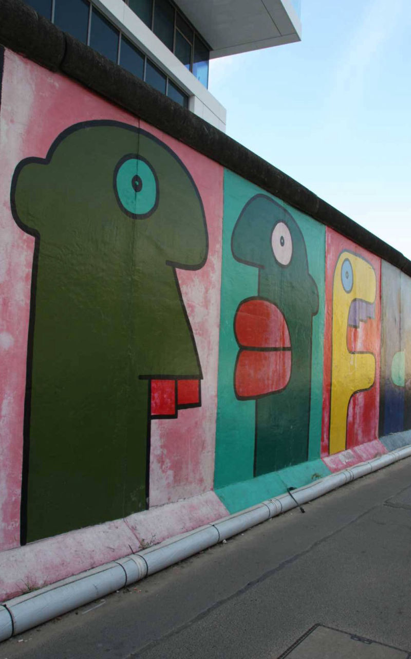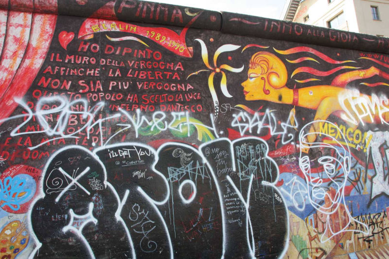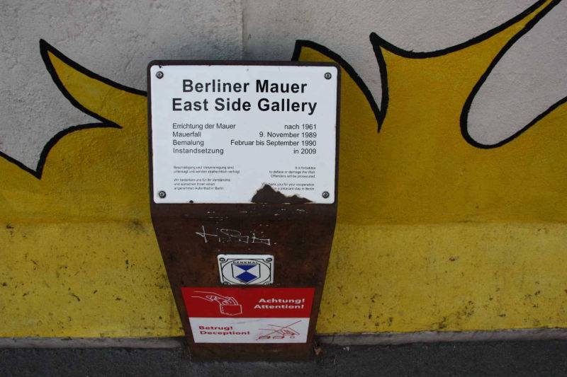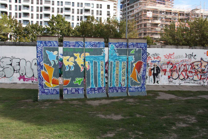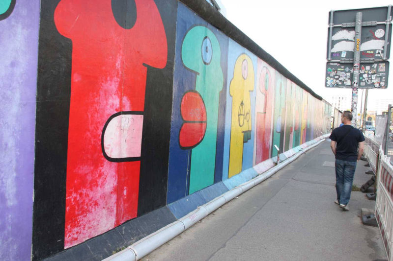 Im Frühjahr 1990, nach der Öffnung der Berliner Mauer, wurde dieses Teilstück von 118 Künstlern aus 21 Ländern auf einer Länge von 1316 Metern bemalt. Die Künstler kommentierten in gut einhundert Gemälden auf der ehemals Ost-Berlin zugewandten Seite der Mauer mit den unterschiedlichsten künstlerischen Mitteln die politischen Veränderungen der Jahre 1989/90. Wegen städtebaulicher Maßnahmen ist sie mittlerweile nicht mehr durchgehend erhalten, und anstelle der Originale von damals existieren heute nur noch die im Jahr 2009 entstandenen Repliken.
