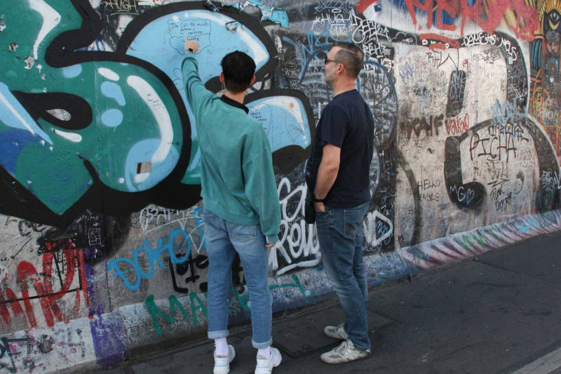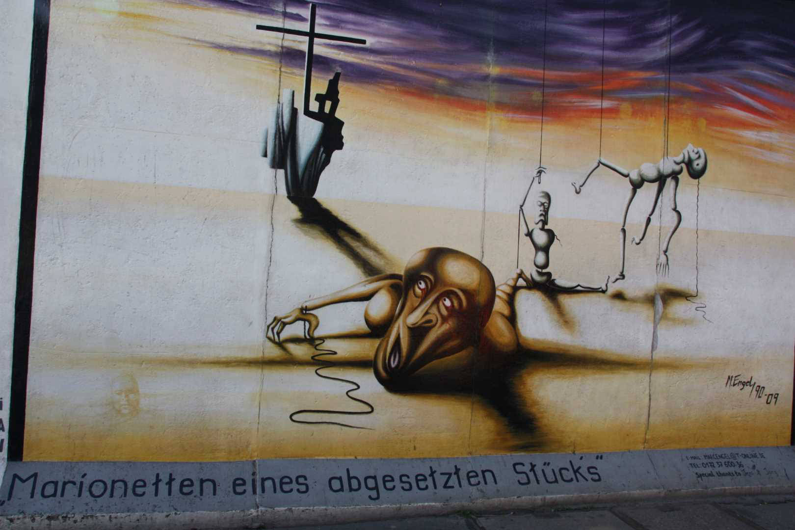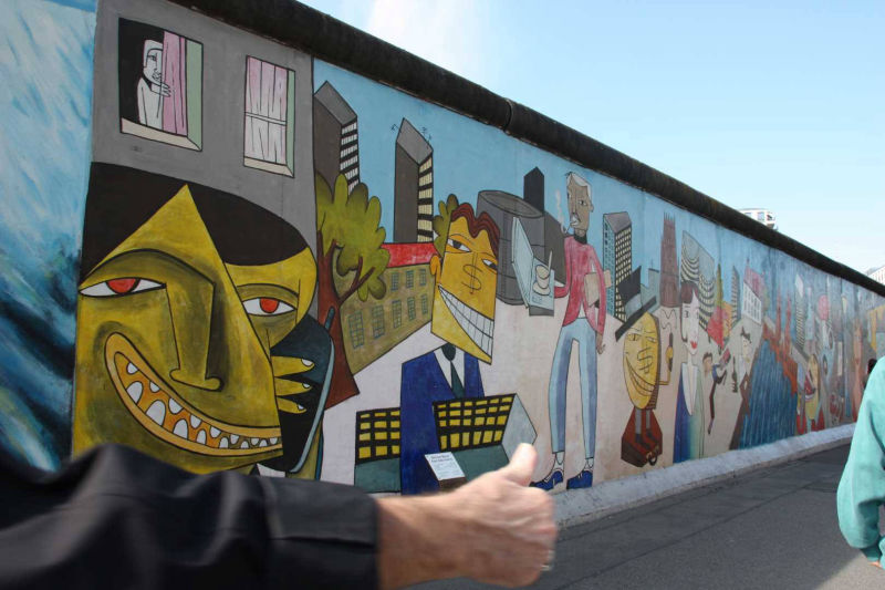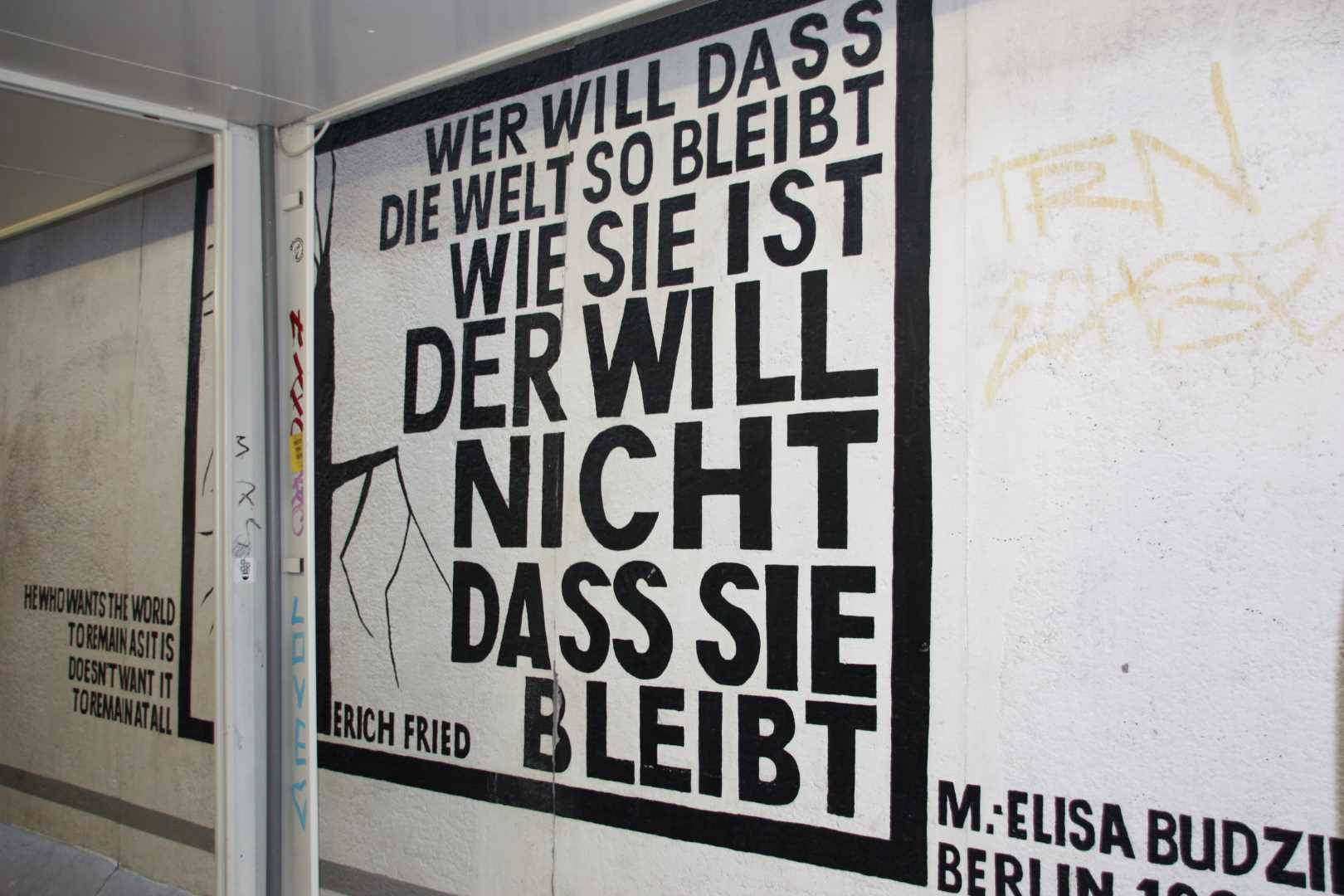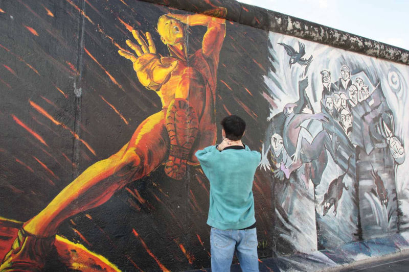 Im Frühjahr 1990, nach der Öffnung der Berliner Mauer, wurde dieses Teilstück von 118 Künstlern aus 21 Ländern auf einer Länge von 1316 Metern bemalt. Die Künstler kommentierten in gut einhundert Gemälden auf der ehemals Ost-Berlin zugewandten Seite der Mauer mit den unterschiedlichsten künstlerischen Mitteln die politischen Veränderungen der Jahre 1989/90. Wegen städtebaulicher Maßnahmen ist sie mittlerweile nicht mehr durchgehend erhalten, und anstelle der Originale von damals existieren heute nur noch die im Jahr 2009 entstandenen Repliken.