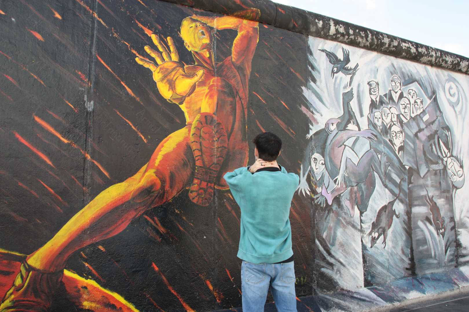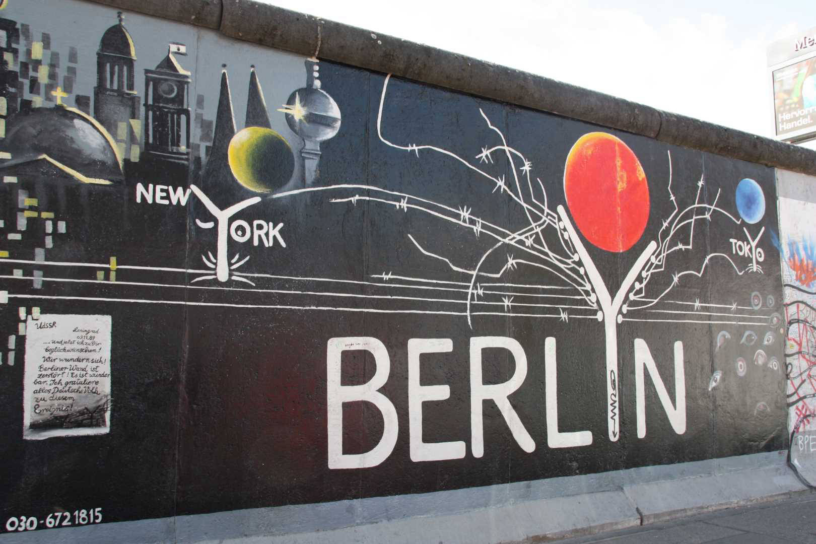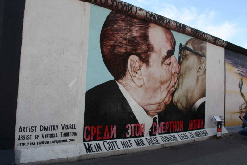 Das Denkmal East Side Gallery in Berlin-Friedrichshain ist eine dauerhafte Open-Air-Galerie auf dem längsten noch erhaltenen Teilstück der Berliner Mauer in der Mühlenstraße zwischen dem Berliner Ostbahnhof und der Oberbaumbrücke entlang der Spree.