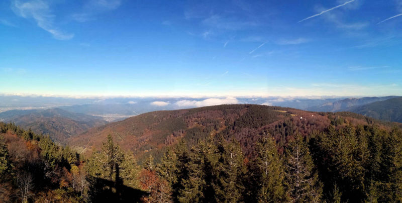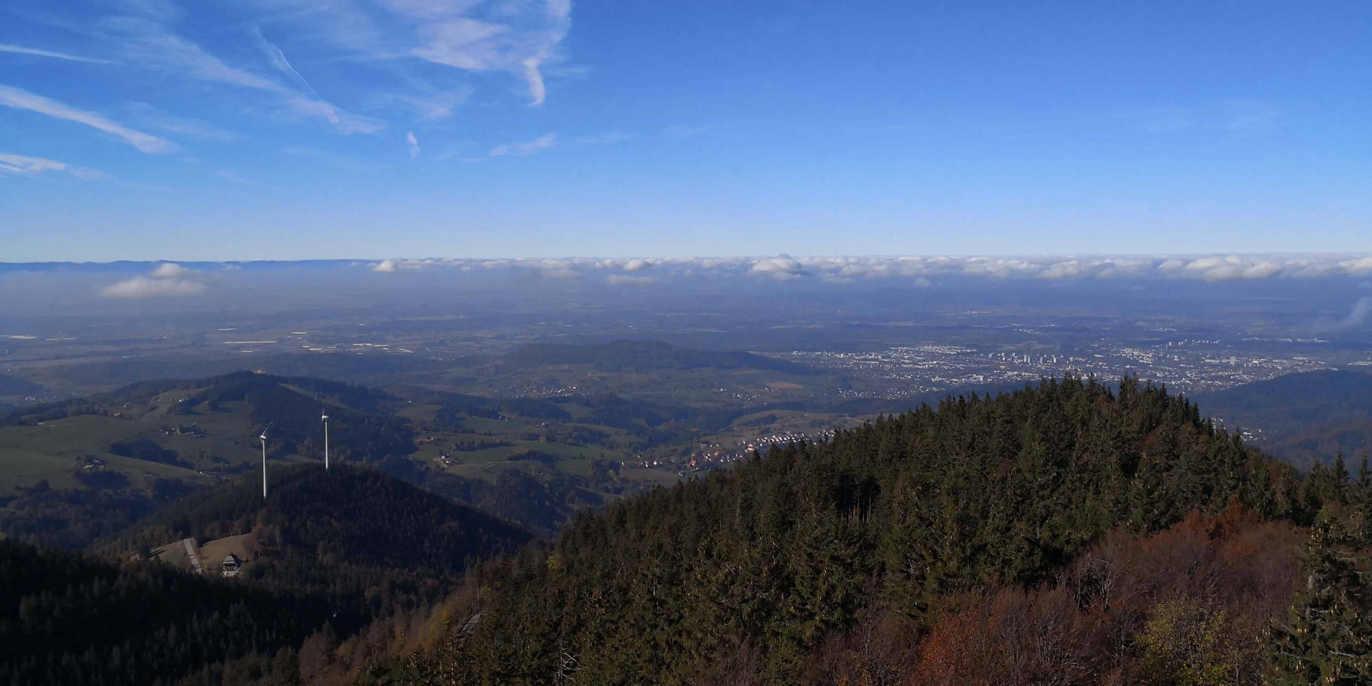 Besonders bei Inversionswetterlagen im Herbst bietet der Schauinsland hervorragende Aussichten „über den Wolken“ bis zu den Vogesen, zur Hornisgrinde und in die Alpen: Tödi, Titlis, Eiger, Jungfrau, Weißhorn, Bietschhorn, Grand Combin, Mont Blanc. Anders als vom nahegelegenen Feldberg ist die Schwäbische Alb allerdings nicht sichtbar; dafür ist ein Blick hinunter nach Freiburg im Breisgau möglich.