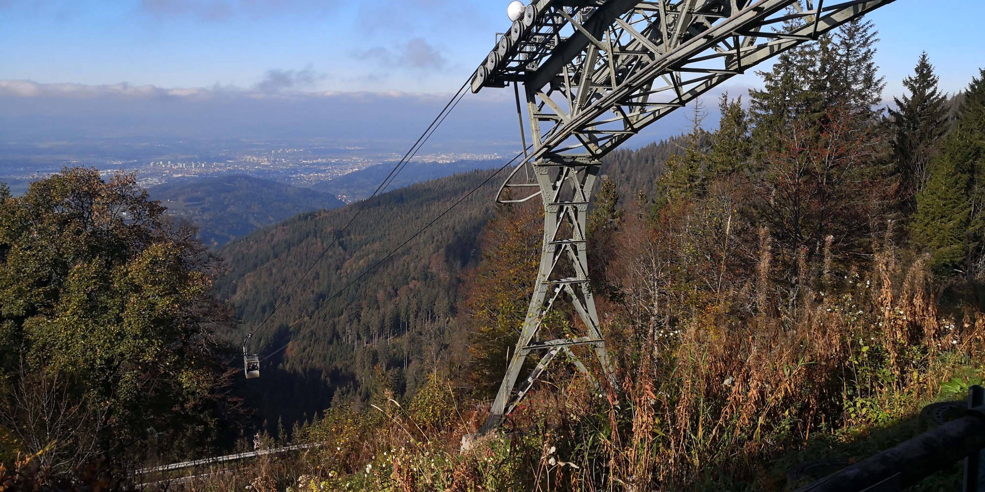 Den Gipfel erreicht man bequem mit der Schauinslandbahn, sie ist die längste nach dem Umlaufprinzip konzipierte Seilbahn Deutschlands und weltweit die erste dieser Art zur Personenbeförderung. Sie führt von der Talstation in Horben bei Freiburg im Breisgau auf den 1284 m hohen Schauinsland. Die Bergstation liegt etwas unterhalb des Berggipfels auf 1220 m und einige Hundert Meter südwestlich. Sie wurde 1930 eröffnet und 1987/88 technisch überholt und erneuert.
