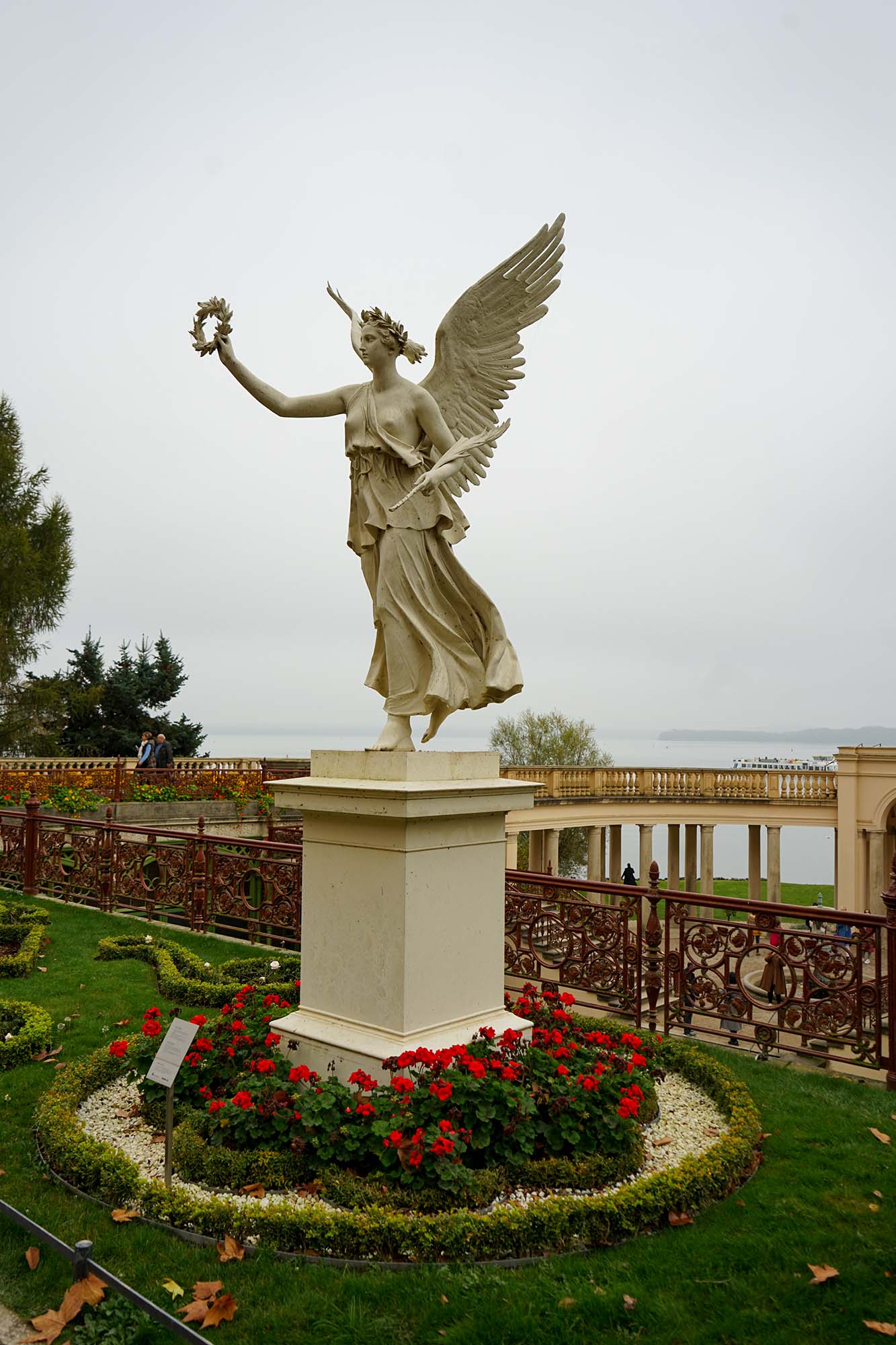 Nicht nur in der schönen Jahreszeit ist der Garten des Schlosses ein Spaziergang wert. Er breitet sich unmittelbar um das Schloss herum aus, wo zudem eine Orangerie, eine Grotte und ein reizvoller Kolonnadenhof Architektur und Landschaftsgestaltung in einen harmonischen Zusammenklang bringen. Das historische barocke Gartenparterre, dessen strenge Strukturen sich in den Kanal- und Wegeführungen noch immer abzeichnen, erstreckt sich auf einem weiten Areal am Burgsee und endet in einer Rasenkaskade am Ostdorfer Berg. Im 19. Jahrhundert landschaftlich durch Peter Joseph Lenné überformt, zieht der Schweriner Schlossgarten aufgrund seiner Lage und ruhigen Spazierwege tausende Besucher an. Und der aus dem frühen 19. Jahrhundert stammende oktogonale Pavillon lädt heute als Restaurant jeden müden Flaneur zu einer wohlverdienten Ruhepause.