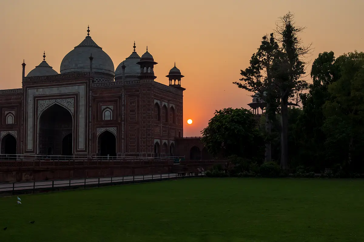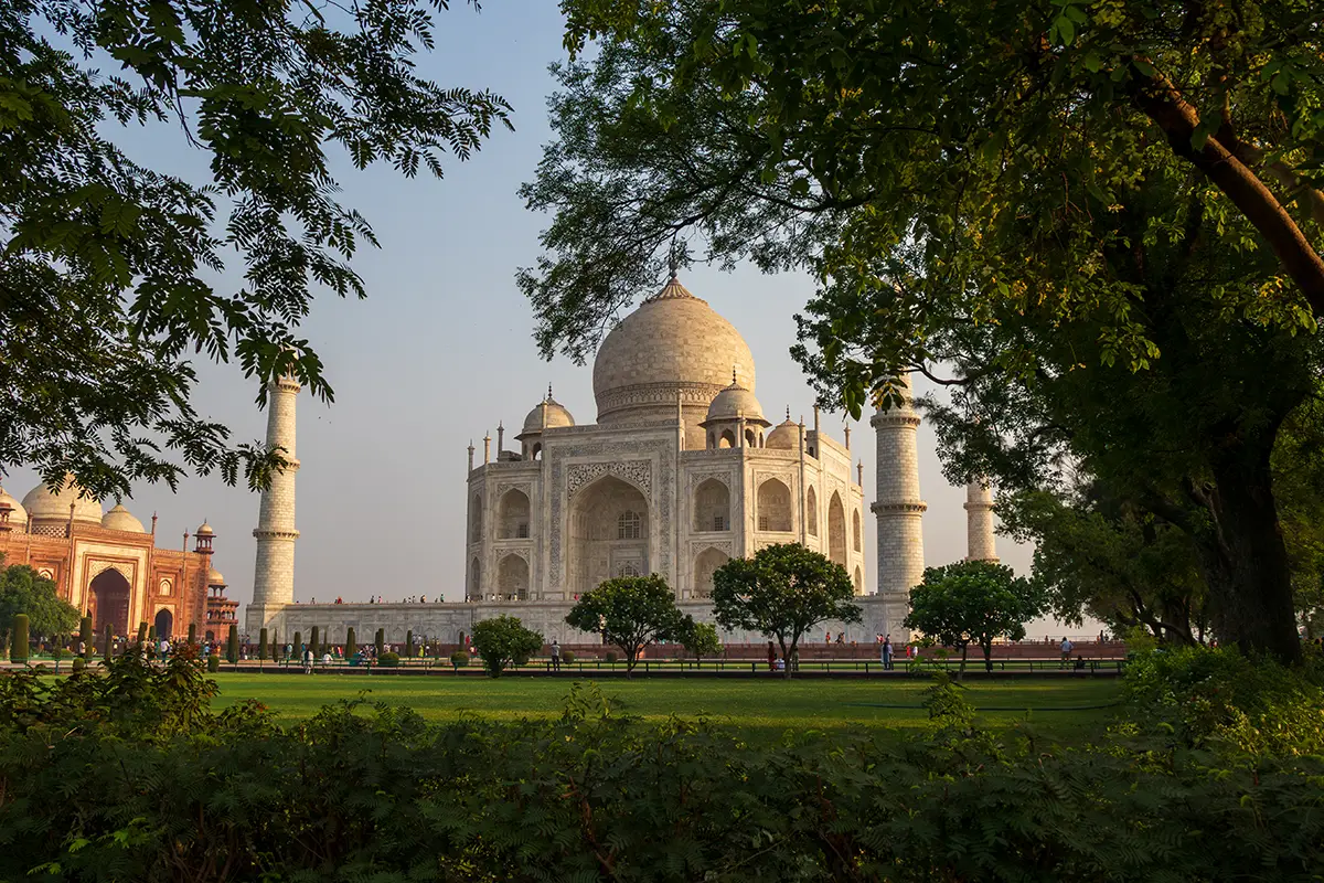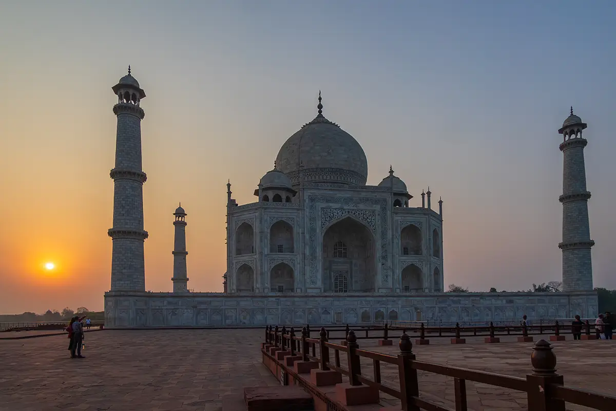 Das Taj Mahal in Agra, Indien, zählt zu den beeindruckendsten Bauwerken der Welt und ist ein herausragendes Beispiel für die Architektur des Mogulreichs. Es wurde von Kaiser Shah Jahan zwischen 1632 und 1653 als Mausoleum für seine geliebte Frau Mumtaz Mahal errichtet, die während der Geburt ihres 14. Kindes verstorben war. Der Bau des Taj Mahal war ein monumentales Projekt, das tausende von Handwerkern, Ingenieuren und Künstlern über zwei Jahrzehnten beschäftigte.